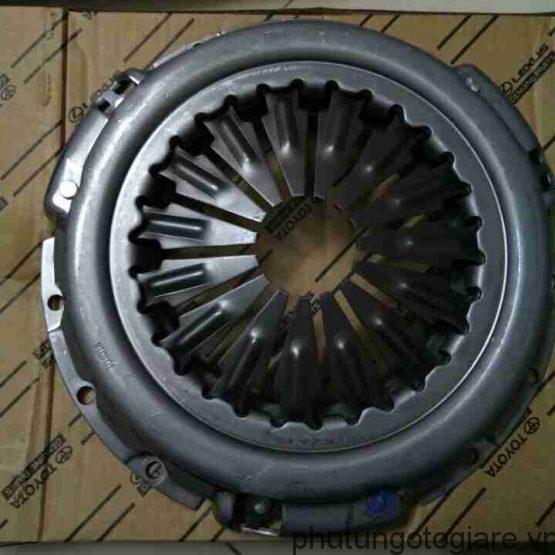 BÀN ÉP TOYOTA LAND CRUISER, FORTUNER, HILUX VIGO ép chặt lá côn hay đĩa ma sát vào bánh đà để thực hiện quá trình truyền động. Bàn ép ô tô gồm hai loại: Lò xo trụ và lò xo màng. Bàn ép ly hợp được làm bằng vật liệu chịu tải, đảm bảo độ phẳng cao, được điều khiển để đóng hoặc mở ly hợp. Bàn ép, với một hoặc nhiều lò xo gắn với khung ly hợp. Khung ly hợp được gắn với bánh đà bằng các bulông và cùng quay với nó. Khi ly hợp ăn khớp, lực ép, lò xo giữ cho đĩa ma sát tỳ vào bánh đà. Trục vào của hộp số đồng tâm với trục khuỷu. Đầu nhỏ của trục vào hộp số được đỡ trên bạc định hướng ở cuối trục khuỷu.