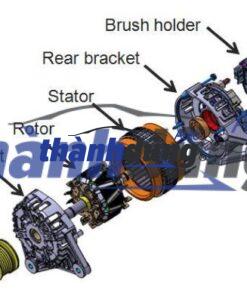 - Tiếng động lạ, rung khi máy phát làm việc: Giá đỡ bị lỏng hoặc máy phát bị lệch. Khi động cơ chạy, máy phát dao động, va vào các chi tiết khác, gây tiếng kêu, rung lắc.