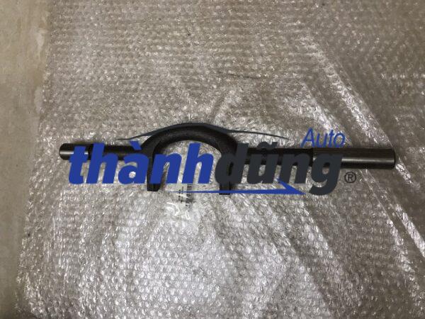 CÀNG CUA ĐẨY BI TÊ THACO OLLIN 250 | 1043V8JE6-0DZA10 hay còn gọi Trục đẩy càng cua hộp số là một bộ phận quan trọng trong hệ thống hộp số trên xe ô tô. Trục đẩy càng cua hộp số và được lắp trên thanh đi số trong hộp số. Trục đẩy càng cua hộp số được làm bằng hợp kim có thể chịu được lực kéo và lực nén lớn. Cấu tạo của trục đẩy càng cua có hình dạng hình chữa L. Một đầu chữ L nối vào thanh đi số, đầu còn lại bánh răng số. Nguyên lý làm việc: Khi người lái xe tác động vào tay đi số, tay đi số sẽ truyền lực xuống thanh đi số thông qua dây đi số. Thanh đi số sẽ đẩy các răng trung gian tới các bánh răng của các số tương ứng thông qua trục đẩy càng cua hộp số. Một trục đẩy càng cua hộp số sẽ chuyển đổi cho hai số khác nhau