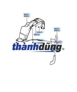 CHẮN BÙN BÁNH TRƯỚC PHẢI MAZDA 6 2014 có hình chữ L thường được lắp đặt ở phía sau của bánh xe. Chắn bùn bánh có chức năng : Ngăn bùn đất, nước bẩn và các vật thể khác bắn lên thân xe: Khi xe di chuyển, bánh xe quay sẽ văng ra bùn đất, nước bẩn và các vật thể khác. Chắn bùn bánh có vai trò như một tấm chắn, giúp ngăn chặn những vật thể này bắn lên thân xe, bảo vệ lớp sơn xe không bị trầy xước, bong tróc. Bảo vệ các bộ phận bên trong xe: Bùn đất, nước bẩn và các vật thể khác có thể xâm nhập vào các bộ phận bên trong xe như hệ thống phanh, hệ thống truyền động, gây hư hỏng hoặc làm giảm hiệu quả hoạt động của các bộ phận này. Chắn bùn bánh giúp hạn chế tình trạng này xảy ra. Tăng tính thẩm mỹ cho xe: Chắn bùn bánh góp phần tạo nên sự hoàn chỉnh cho ngoại thất xe, giúp xe trông đẹp mắt và thể thao hơ