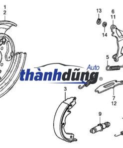 Nguyên lý hoạt động của guốc phanh: nguyên lý hoạt động: Khi người lái đạp phanh, lực phanh sẽ được truyền đến guốc phanh sau. Guốc phanh sẽ ép má phanh vào tang trống phanh, tạo ra lực ma sát làm giảm tốc độ hoặc dừng xe. Khi nhả phanh, lò xo hồi sẽ đẩy má phanh ra khỏi tang trống phanh.