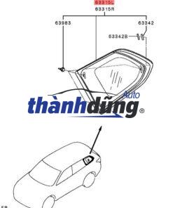 KÍNH CHẾT TOYOTA VIOS 2019 | 681230D301 hay kính tam giác cửa sau, kính hông sau thường được lắp ngay sát kính cánh cửa sau, hoặc ở phần hông của thân xe. Kính hông sau xe ô tô, còn được gọi là kính cố định hoặc kính tam giác, là một ô kính nhỏ hình tam giác hoặc hình chữ nhật nằm ở phía sau thân xe, giữa trụ C và trụ D. Kính này thường không thể điều chỉnh được (tức là không thể mở hoặc đóng), nhưng nó đóng vai trò quan trọng trong việc đảm bảo an toàn và tiện lợi cho người lái.