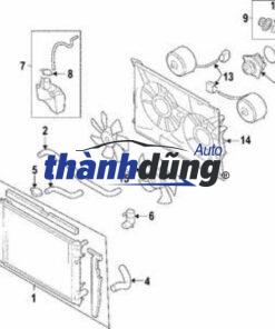Lồng quạt két nước được thiết kế để tập trung luồng không khí. Khi quạt quay, nó sẽ hút không khí từ bên ngoài vào. Khung bọc gió đảm bảo toàn bộ luồng khí này được dẫn thẳng qua các lá tản nhiệt của két nước, giúp làm mát dung dịch làm mát động cơ một cách hiệu quả nhất. Đồng thời, nó ngăn chặn luồng khí bị thất thoát ra ngoài, tối ưu hóa quá trình tản nhiệt và đảm bảo hiệu suất làm mát tối đa.