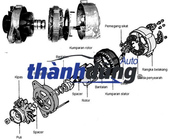 Máy phát điện ô tô tạo ra điện bắt đầu từ hệ thống động cơ. Trục khuỷu làm nhiệm vụ dẫn động máy phát điện trong hầu hết các loại xe ô tô hiện đại. Tuy nhiên có một ròng rọc riêng chạy từ trục khuỷu đến máy phát điện (trên xe ô tô đời cũ). Một máy phát điện tạo ra điện khi roto của nó quay. Roto được bao quanh bởi nam châm, tạo ra từ trường. Từ trường tạo ra một điện áp và được lưu trữ bởi stato và sau đó đến bộ điều chỉnh điện áp. Bộ điều chỉnh xác định điện áp mà ắc quy sẽ nhận và truyền năng lượng đến các thiết bị khác nhau trên xe. Theo thời gian sử dụng, máy phát điện ô tô có thể sẽ gặp phải một số trục trặc làm ảnh hưởng đến hiệu quả làm việc của xe.