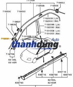 Nẹp cánh cửa Moulding Assy Door có chức năng : Bảo vệ: Nẹp cửa bảo vệ cánh cửa và các bộ phận bên trong khỏi các tác động bên ngoài như trầy xước, va đập, bụi bẩn, nước,…Thẩm mỹ: Nẹp cửa góp phần tạo điểm nhấn cho ngoại thất xe, giúp chiếc xe trở nên sang trọng và thu hút hơn. Chống ồn: Nẹp cửa giúp giảm tiếng ồn lọt vào khoang xe từ bên ngoài. Chống thấm nước: Nẹp cửa giúp ngăn nước mưa chảy vào bên trong xe, bảo vệ các bộ phận điện tử và nội thất. Nẹp cánh cửa thường được làm từ nhựa ABS hoặc kim loại, có độ cứng cao và khả năng chịu nhiệt tốt.