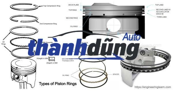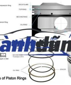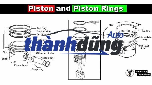 Cấu tạo của Piston: Vòng piston đóng vai trò làm kín khí trong xi lanh, ngăn khí cháy xâm nhập vào khe hở giữa pít tông và thành xi lanh. Điều này duy trì áp suất khí nén giữa hai thành này, Chốt piston, còn được gọi là chốt gudgeon hoặc chốt cổ tay, nối pít tông với đầu nhỏ của thanh truyền. Bản thân chốt có kết cấu trụ rỗng để giảm trọng lượng. Váy piston thường được làm bằng gang để tăng khả năng chống mài mòn và tự bôi trơn. Váy piston có các rãnh để lắp vòng dầu pít tông và các vòng nén. Nguyên lý hoạt động của piston: Khi động cơ hoạt động, pít tông sẽ di chuyển lên xuống trong buồng đốt. Khi pít tông di chuyển lên, nó sẽ nén hỗn hợp khí và nhiên liệu. Sau đó, bugi đánh lửa đốt cháy hỗn hợp khí, tạo ra áp suất đẩy pít tông di chuyển xuống. Chuyển động của pít tông sẽ được truyền qua thanh truyền đến trục khuỷu, tạo ra chuyển động quay để xe di chuyển. Pít tông thường được làm bằng nhôm hoặc thép. Nhôm được sử dụng phổ biến hơn vì nó nhẹ hơn thép.