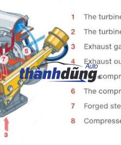 Theo như các nghiên cứu, động cơ turbo có thể giúp tăng công suất từ 20% đến 40% so với động cơ không có turbo. Cánh tuabin nằm ở vị trí khoang kết nối với cổ góp nhận lực đẩy từ dòng khí xả động cơ và cánh bơm nằm ở khoang đối diện cách. Động cơ turbo ô tô giúp tận dụng tối đa lượng nhiên liệu được đốt cháy trong buồng đốt, giảm lượng nhiên liệu thải ra ngoài. Khí xả từ động cơ khi thải ra sẽ làm quay cánh tuabin của bộ tăng áp. Bởi kết nối trên cùng một trục nên khi cánh tuabin quay thì cánh bơm khoang đối diện sẽ quay theo. Cánh bơm này quay giúp hút không khí sạch vào và nạp vào động cơ. Kết quả là khi lượng khí xả càng nhiều thì tốc độ quay của turbo sẽ càng nhanh, cũng như lượng khí được nạp vào động cơ nhiều hơn, qua đó công suất động cơ tăng cao hơn. Nhưng trong trường hợp lượng khí được hút vào với áp suất và nhiệt độ quá cao thì thể tích sẽ tăng lên, mật độ oxy không nhiều. Bởi thế, người ta lắp thêm một bộ làm mát phía trước xe để giải nhiệt cho dòng khí nạp này. Thêm nữa, vì turbo tăng áp ô tô nằm trên đường ống xả nên nếu áp suất khí xả tăng cao sẽ dễ tạo ra một áp suất dội ngược lại vào buồng đốt, gây hư hỏng động cơ. Nhằm khắc phục điểm này, người ta lắp thêm một van an toàn giúp dẫn dòng khí xả dư thừa ra ngoài.