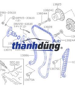 Tỳ xích cam Toyota Hiace có nhiệm vụ đảm bảo xích cam luôn hoạt động chính xác, đồng bộ với trục cam và trục khuỷu. Giúp truyền chuyển động từ trục khuỷu đến trục cam một cách trơn tru và hiệu quả. Giảm thiểu hao mòn và tiếng ồn trong hệ thống truyền động trục cam. Tỳ xích cam thường được làm bằng nhựa hoặc kim loại (như thép, nhôm). Nó có hình dạng dài và hẹp, với các rãnh được thiết kế để ôm sát vào xích cam. Tỳ xích cam có thể được cố định vào vị trí bằng ốc vít hoặc chốt. Tỳ xích cam thường được lắp đặt ở bên trong nắp động cơ, gần với xích cam và bánh răng cam. Chất liệu của tỳ xích cam thường phụ thuộc vào kiểu xe và điều kiện hoạt động của động cơ. Nhựa: Nhựa là chất liệu phổ biến nhất cho tỳ xích cam vì nó nhẹ, rẻ tiền và dễ sản xuất. Tuy nhiên, nhựa có độ bền không cao và có thể bị mòn theo thời gian. Kim loại: Kim loại (như thép, nhôm) có độ bền cao hơn nhựa và có thể chịu được tải trọng lớn hơn. Tuy nhiên, kim loại nặng hơn và đắt hơn nhựa.