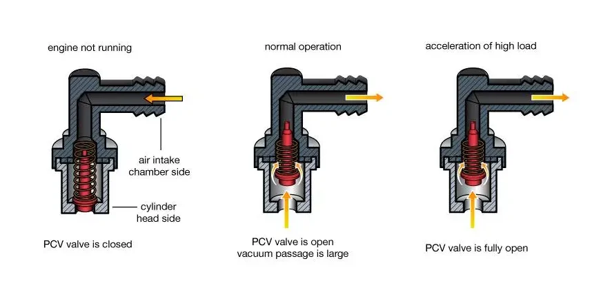 Những bộ phận này hoạt động cơ học, không cần điều khiển điện tử. Chúng giúp van PCV hoạt động tự động dựa trên áp suất trong động cơ.