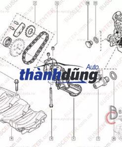 Xích bơm dầu động cơ (Oil Pump Roller Chain) truyền động từ trục khuỷu (crankshaft) đến bơm dầu (oil pump), giúp bơm dầu động cơ tuần hoàn khắp hệ thống bôi trơn. Đảm bảo động cơ được bôi trơn đầy đủ, giúp giảm ma sát, mài mòn và tăng tuổi thọ động cơ. Xích bơm dầu động cơ bao gồm các bộ phận chính: Mắt xích: Các mắt xích được làm từ kim loại cứng cáp, có độ bền cao và khả năng chịu tải trọng lớn. Trục xích: Trục xích được làm từ thép cứng, có độ chính xác cao để đảm bảo chuyển động mượt mà. Bánh răng: Bánh răng được lắp đặt ở hai đầu trục xích, ăn khớp với nhau để truyền động từ trục khuỷu đến bơm dầu. Bộ натя xích: Bộ натя xích giúp điều chỉnh độ căng của xích, đảm bảo xích hoạt động trơn tru và không bị trượt.