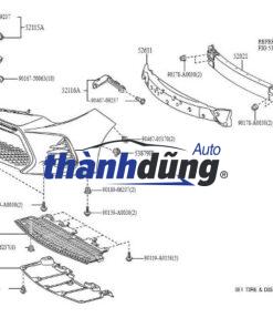 Xốp giảm chấn cản trước thường có hình dạng cong theo thiết kế cản xe, được lắp cố định giữa mặt cản nhựa và thanh ngang (bumper beam hoặc reinforcement). Bộ phận này không lộ ra ngoài mà nằm ẩn bên trong, đóng vai trò bảo vệ khung xe, đèn pha, bộ tản nhiệt và các linh kiện phía trước khi xảy ra va chạm nhẹ.